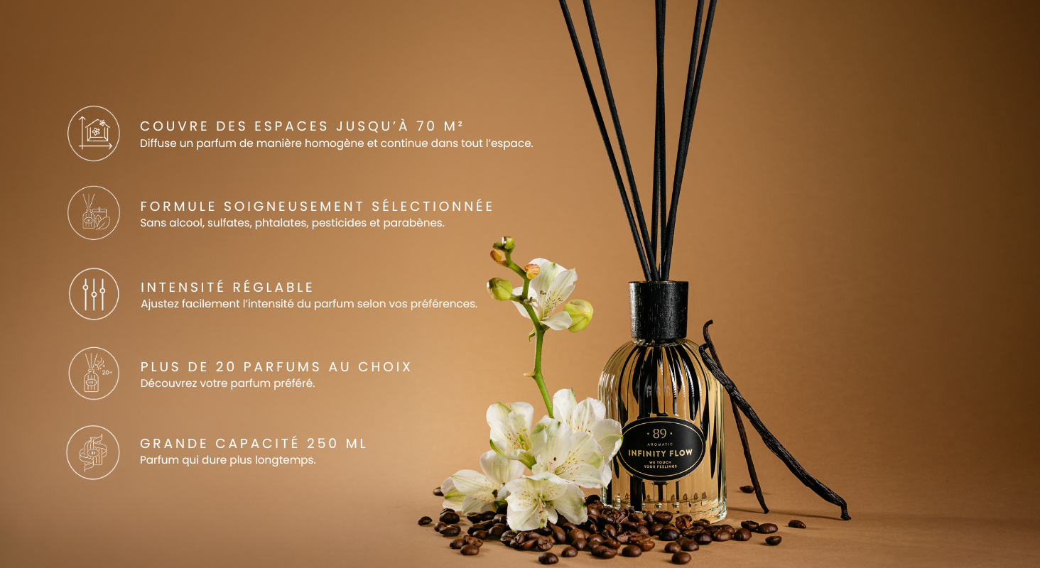 Chaque parfum renferme les histoires créées chez vous, vous permettant de les revivre chaque fois que vous rentrez chez vous.